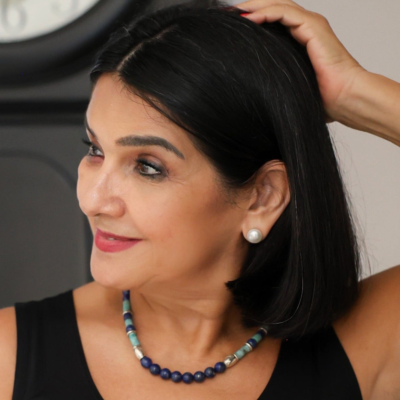 Material: Plata 950,piedra lapislázuli piedra amazonita azul