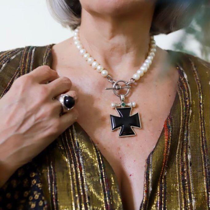 Medida: 45 cm largo, perlas 10 mm, broche 20mm, aprox.