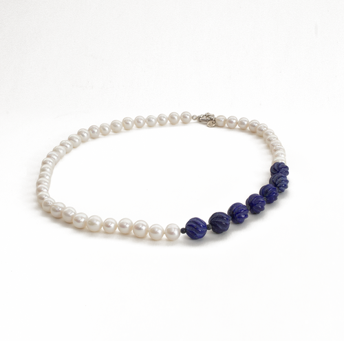 Collar Perlas con Lapislázuli Estriado2, plata 950