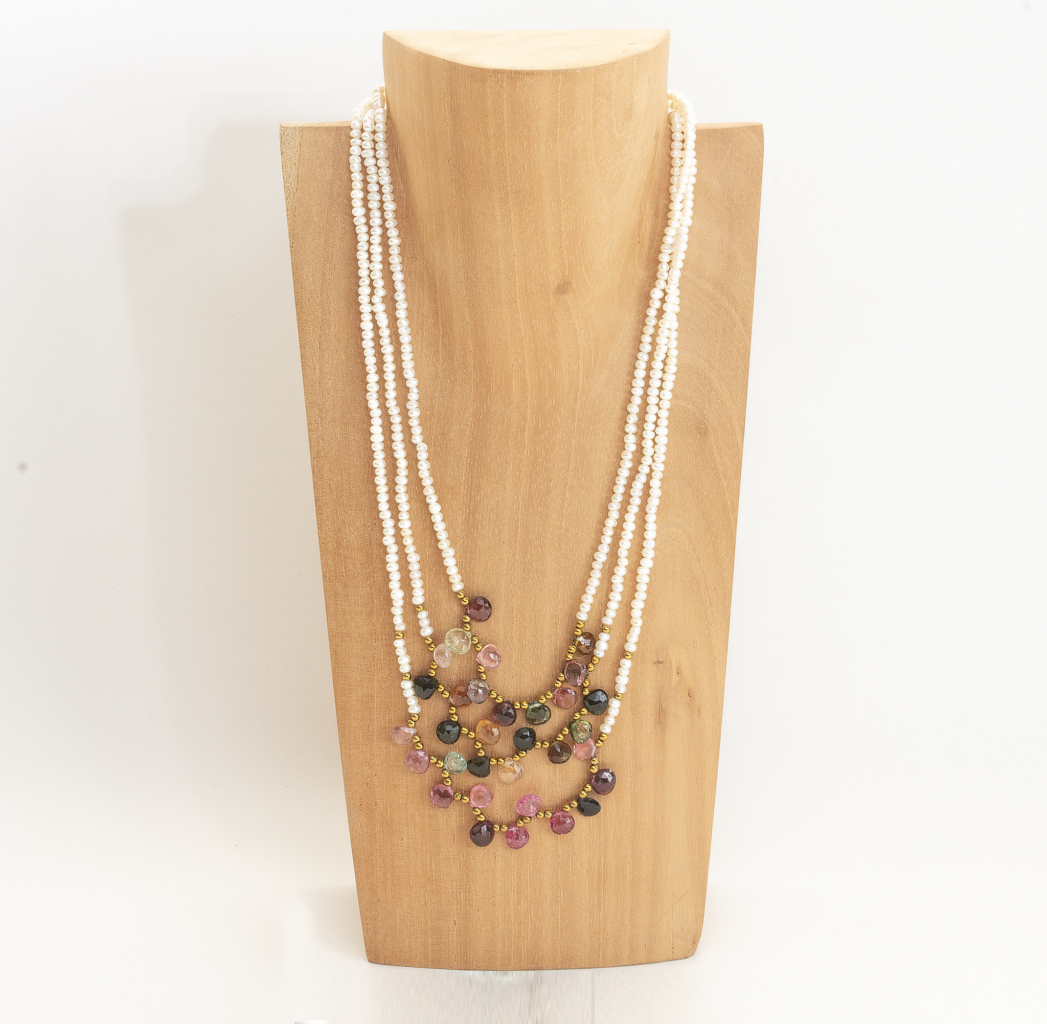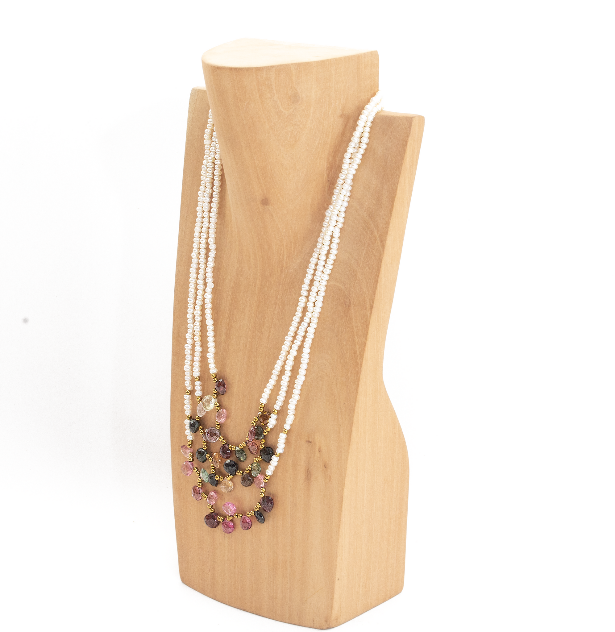 Material: Plata 950 , perlas menudas naturales. turmalinas.